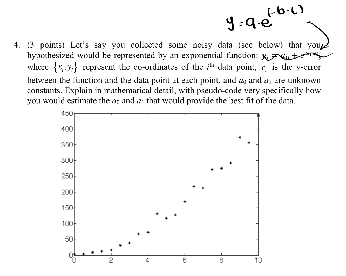 between the function and the data point at each point, and a_(0) and a_(1) are unknown